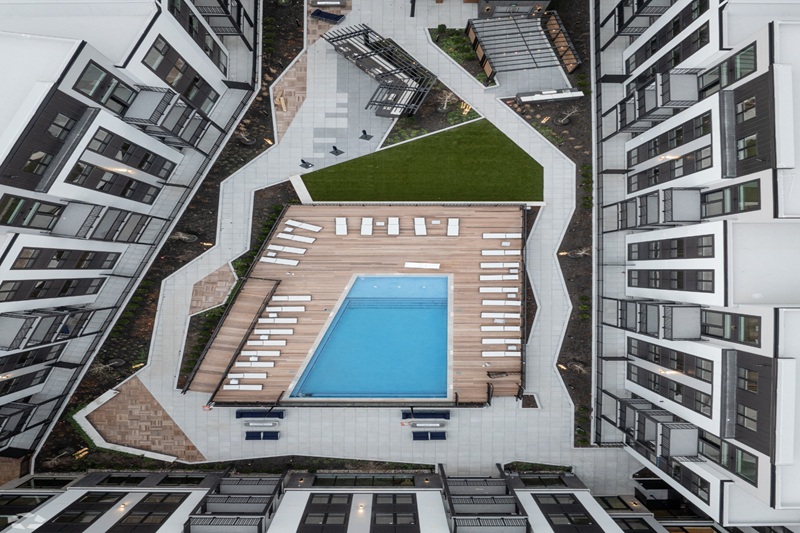 In a significant stride towards urban revitalization, a new development has been unveiled, featuring 255 residential units perched atop a two-level structured parking podium. This contemporary complex promises to redefine city living with its comprehensive suite of amenities designed to cater to the needs of its residents. The development boasts on-site parking, ensuring convenience for vehicle owners, while a beautifully landscaped courtyard offers a serene escape with a pool, lounge and gourmet areas. Fitness enthusiasts will appreciate the state-of-the-art fitness center, and community lounges and coworking spaces provide ideal spots for socializing and productivity.