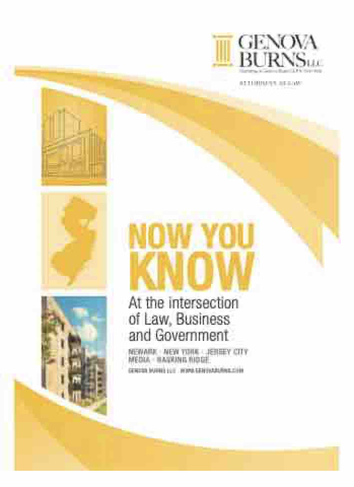 NOW YOU KNOW At the intersection of Law, Business and Government NEWARK • NEW YORK • JERSEY CITY MEDIA • BASKING RIDGE GENOVA BURNS LLC • WWW.GENOVABURNS.COM