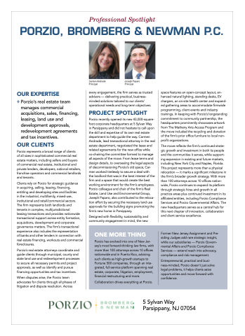 ♦ Porzio’s real estate team