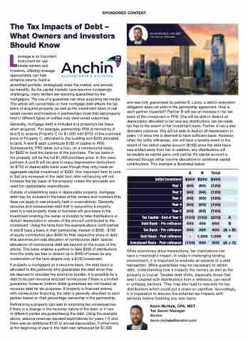have a meaningful impact. In today’s challenging lending environment, it is important to evaluate all aspects of a debt transaction. While guarantees may be necessary to obtain debt, understanding how it impacts the owners as well as the property is crucial. Taxable debt shifts, especially those that aren’t coupled with distributions from a refinance, can result