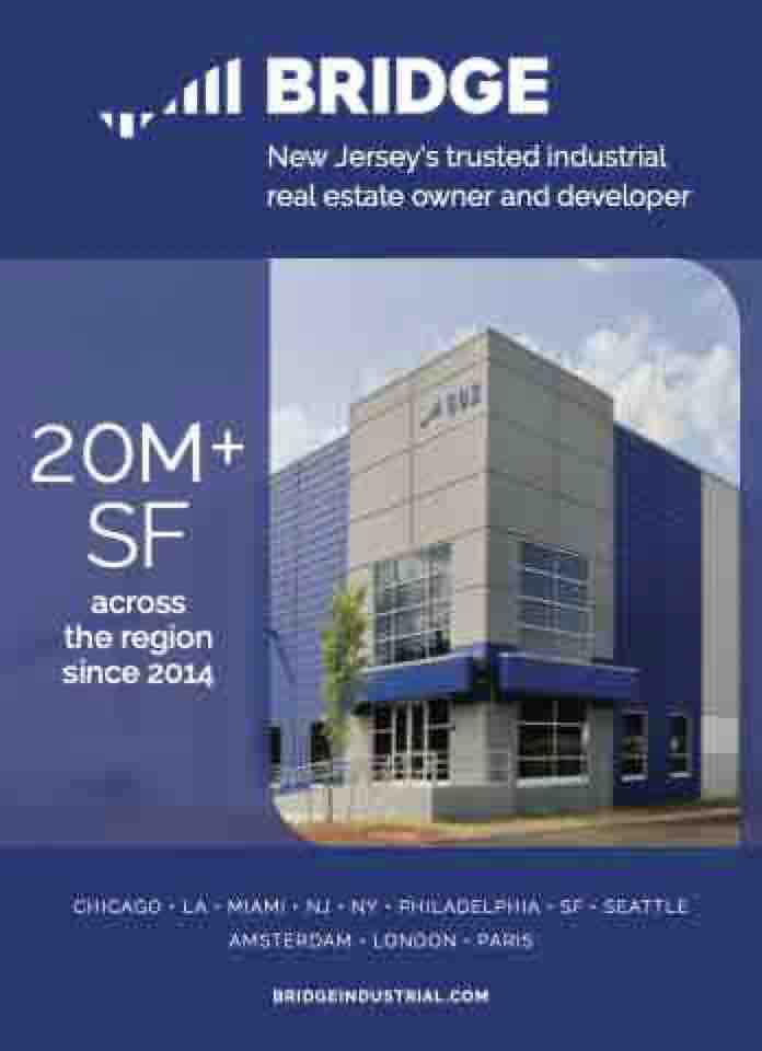 New Jersey’s trusted industrial real estate owner and developer 20M+ SF across the region since 2014 CHICAGO • LA • MIAMI • NJ • NY • PHILADELPHIA • SF • SEATTLE AMSTERDAM • LONDON • PARIS BRIDGEINDUSTRIAL .COM