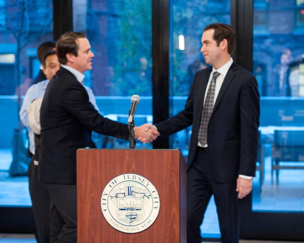 James Caulfield, Fields Development Group co-founder and partner, with JC Mayor Steven Fulop.