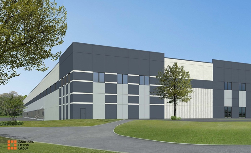 A new 353,525-square-foot industrial building is coming to Manunkachunk Road in Belvidere under a project by Belvidere Urban Renewal LLC. — Rendering by Anderson Design Group / Courtesy: Kearny Bank