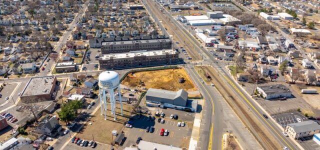 Kokes Properties has broken ground on a 64-unit apartment building that will complete its redevelopment of an iconic but long-shuttered factory property in Burlington County.