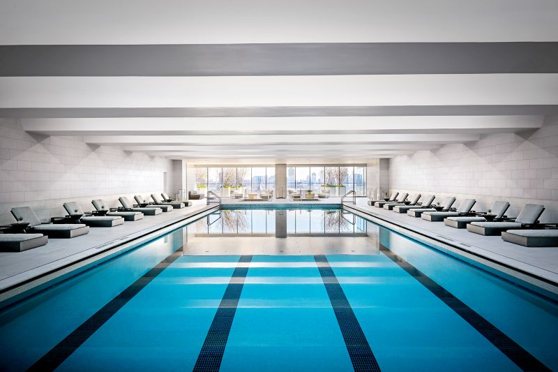 The Journal’s 40,000 square feet of amenity space has been a differentiator. That begins with the basketball court, Meyer said, noting that residents quickly started an intrabuilding league. But it’s also just one piece of the property’s vast health and wellness offerings, which also include a 75-foot-long indoor lap pool, an outdoor pool, saunas, a climbing wall, a squash court and an expansive fitness center with sweeping skyline views.