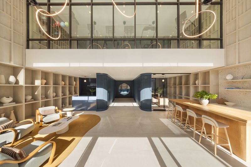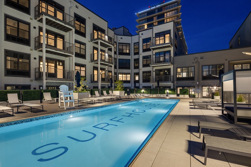SURFHOUSE, for its part, has 15,000 square feet of amenity spaces and 3,500 square feet of retail space along Kingsley Street. Renters at the property, which was designed by Lessard Design, with interiors by Fogarty Finger, also have access electric vehicle charging stations, secure bike and surfboard storage and pet-friendly elements.