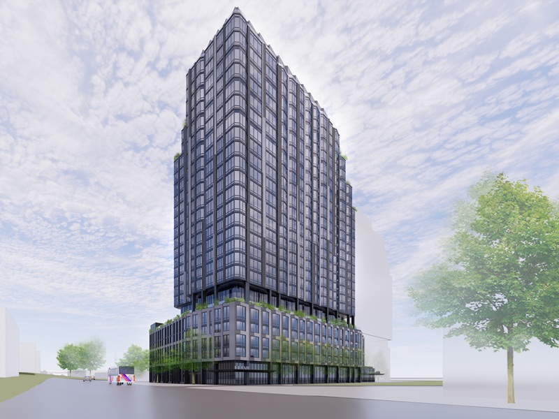 The firm said the project, designed by FXCollaborative, will have a notched glass-and-corrugated façade that evokes the nearby Palisades. CetraRuddy designed the building’s luxury interiors, which will complement more than 25,000 square feet of high-end indoor amenities and a host of outdoor spaces.