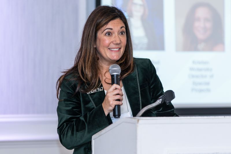 Melissa Clarke, a partner with Saul Ewing LLP and president of CREW NJ, spoke during the organization’s sponsor expo and board induction event in mid-December. — Photos by Dakota Moyer Photography / Courtesy: CREW NJ