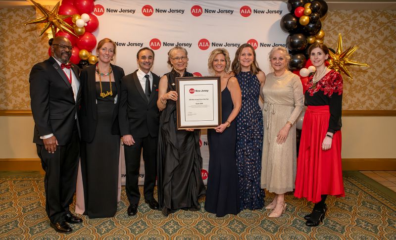 Studio 1200 received AIA New Jersey’s Firm of the Year award during the organization’s Jan. 17 awards gala. From left: Andrew Thompson, AIA past president, along with Studio 1200’s Kate Burke, Prisco Tarquinio, Nancy Dougherty, Sandee Markwith, Annie Savage and Lillie Bryen and AIA-NJ President Jessica O’Donnell. — Photos courtesy: Studio 1200